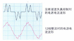 電機(jī)輸出大于18.5KW的變頻器都具有兩組整流二極管,使用3繞線變壓器,可以實現(xiàn)12相整流,這樣將高次諧波失真率抑制在12%,該裝置同時內(nèi)置有直流電抗器。18.5KW以下機(jī)型都預(yù)留了外部直流電抗器的外部接線端子。