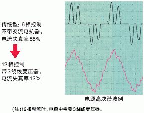 完善的電源高次諧波對策,在18.5kw以上的全機(jī)種里,內(nèi)置高次諧波抑制用直流電抗器,而且,也能對應(yīng)12相整流(必須配3卷線變壓器)