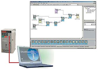 1、配備有可視化程序設(shè)計功能DRIVEWORKSEZ。通過與上位控制電路或變頻器的I/O裝置的組合,可減少需要外設(shè)的定時器和繼電器等外圍設(shè)備。使用計算機,通過鼠標(biāo)的拖放操作可簡單地定制變頻器。