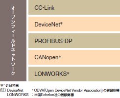各種現(xiàn)場網(wǎng)絡(luò):標(biāo)準(zhǔn)配備了RS-422/485通信功能,在通過安裝通信選配卡,可對應(yīng)主要的開放式現(xiàn)場網(wǎng)絡(luò)。
