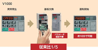 V1000變頻器可以適應(yīng)各類電機,除了感應(yīng)電機(IM),還可驅(qū)動以往一直使用專用變頻器的同步電機(IPM SPM)。因此,該變頻器通用性強,實現(xiàn)了變頻器備件的通用化!