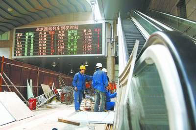 2008 年 7 月 20 日,北京西客站奧運前重點裝修改造工程 — 自動扶梯安裝工程,多部扶梯安裝調(diào)試全部完成,目前均投入使用。這極大方便了奧運期間旅客上下站臺。
