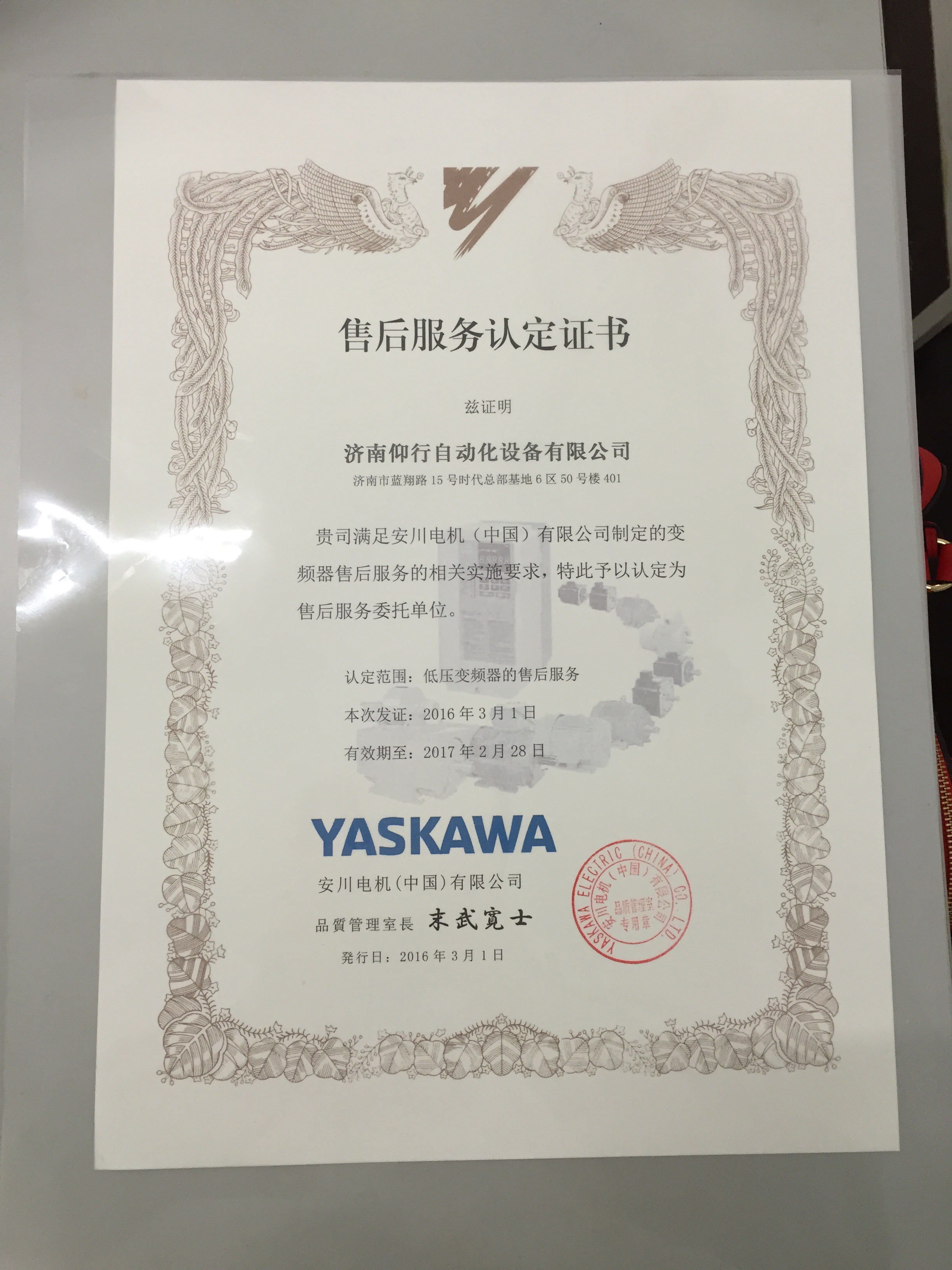熱烈慶祝濟南公司取得安川電機售后服務資質